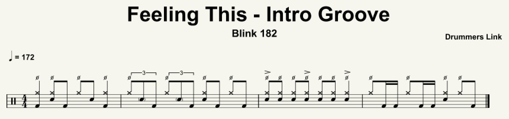 Here is the intro drum groove notated for the first 4 bars of ‘Feeling This’ by Blink 182.