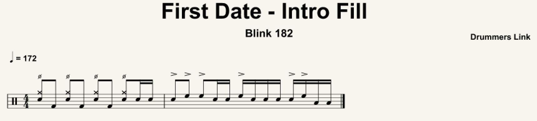 Here is the intro drum fill notated, which is heard several times throughout the song ‘First Date’ by Blink 182.